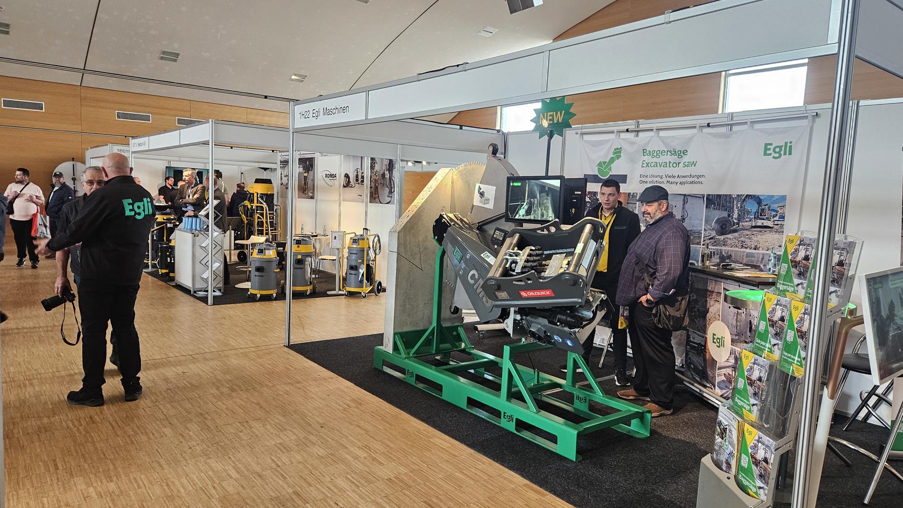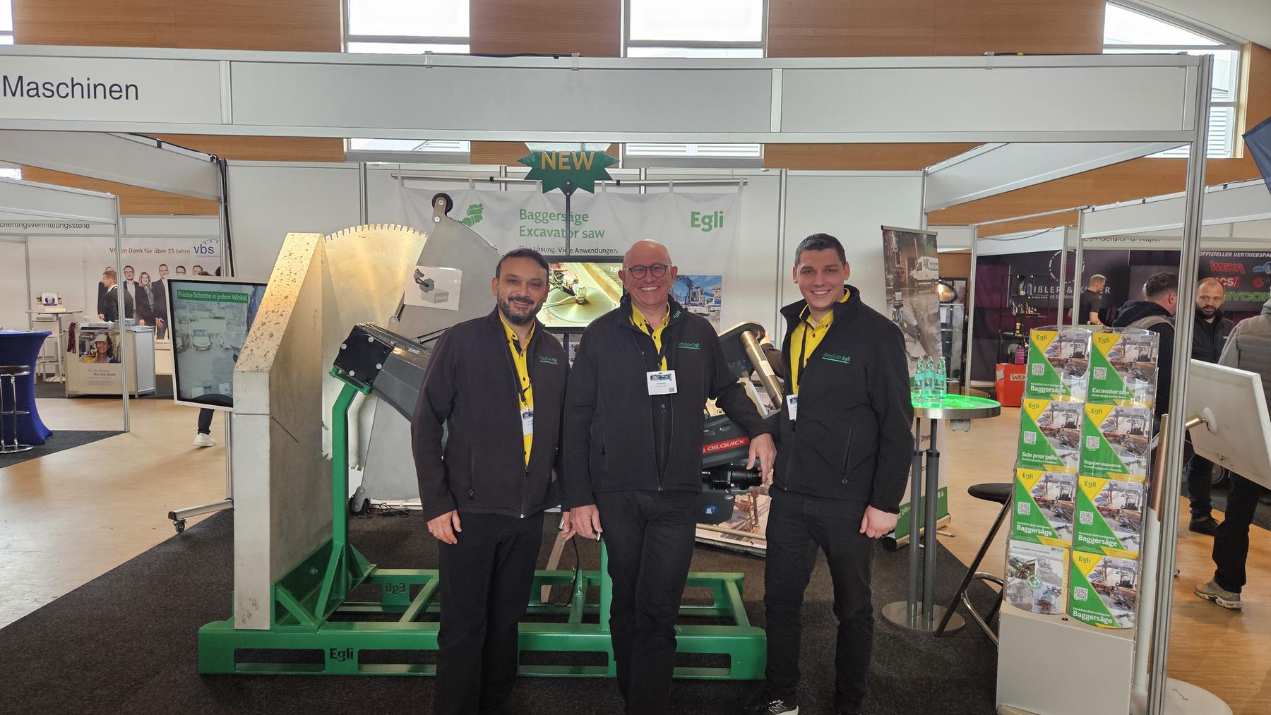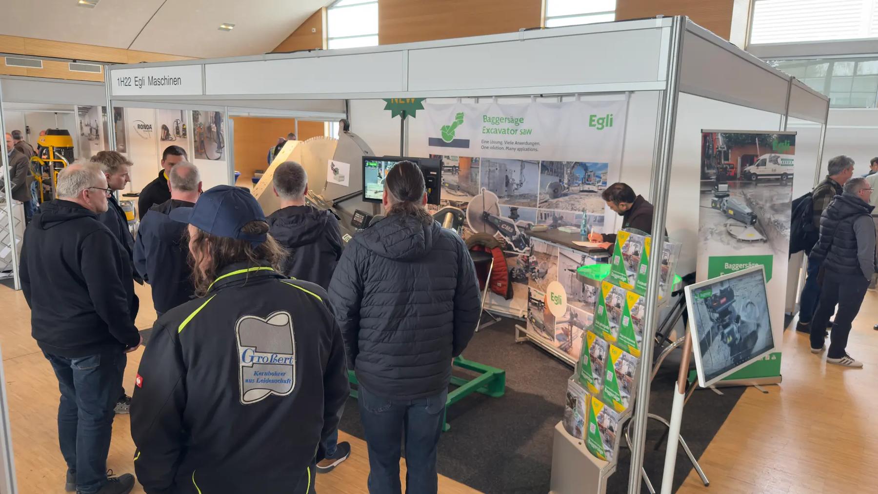 In einer grossen Messehalle, die vor allem von handgeführten Werkzeugen geprägt war, stachen wir mit unserer Baggersäge definitiv hervor. Entsprechend war auch das Interesse gross: Besucher:innen aus mehr als 8 Ländern liessen sich diese Technologie erklären und diskutierten mit uns über neue Einsatzmöglichkeiten auf der Baustelle.